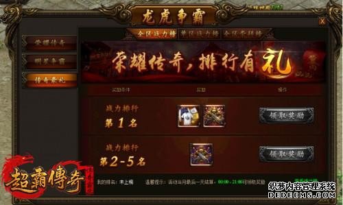 截止到奖励结算日(即每月最后一天)0点,全区战力榜、单区战力榜和全区崇拜榜三个排行榜前5名,可在当天0:00—21:00前往传奇豪礼界面领仍应奖励,限量明星周边、专属称号奖励等你来。