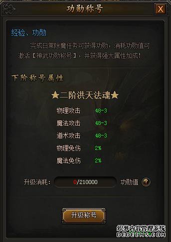 功勋值可以用来领取功勋称号,功勋称号可以不断升级,称号等级越高,给予的属性值提升越高。所以每天一定要记得做功勋除魔任务哦!