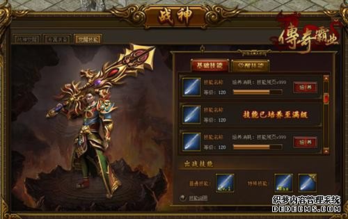 数千年前,玛法大陆战火滔天,自然环境恶劣,一批默默无闻的战神在无止境的战斗中不断强化自身,如今,战神觉醒的奥秘已被发现,玩家可追随先辈的脚步,开启传奇霸业强大的战神历练。玩家召唤战神之后,可穿戴十多件专属装备并不断升级培养,同时,战神还拥有基础技能和觉醒技能,一旦触发,摧枯拉朽,势不可挡。